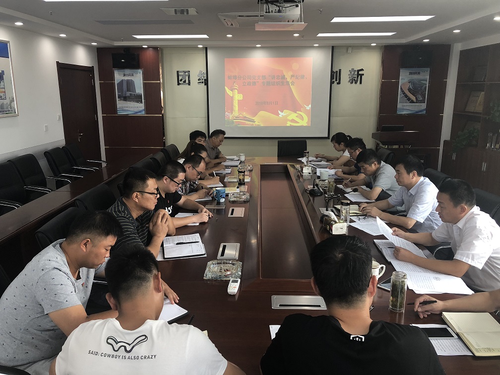 8月1日上午,蚌埠分公司黨支部召開“講忠誠、嚴紀律、立政德”警示教育專題組織生活會,分公司領(lǐng)導班子成員、支部全體黨員參加會議,會議由黨支部書記洪軍主持。公司副總經(jīng)理劉安俊,紀委書記、工會主席李寬旭蒞臨指導。