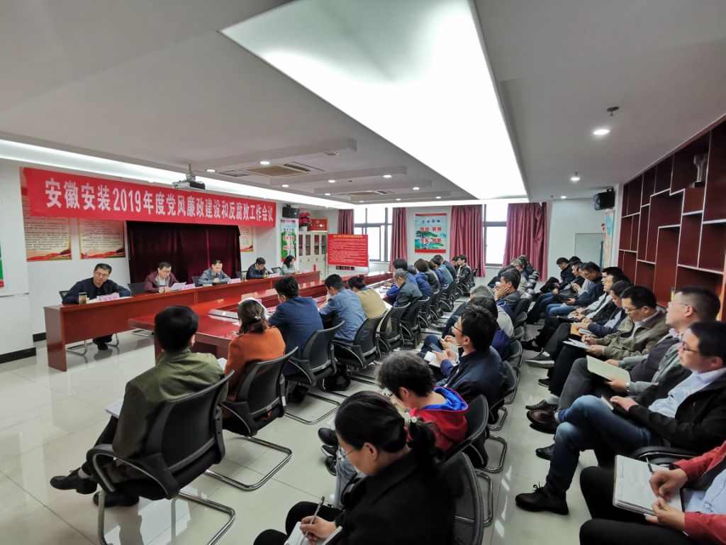 4月29日下午,安徽安裝公司組織召開(kāi)2019年度黨風(fēng)廉政建設(shè)和反腐敗工作會(huì)議,公司領(lǐng)導(dǎo)班子成員、公司中層管理人員及黨群部門(mén)全體人員近60人參加會(huì)議。會(huì)議由公司紀(jì)委書(shū)記、工會(huì)主席李寬旭主持。