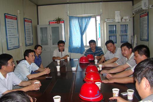 張書記一行代表集團公司向堅守崗位的職工表示親切慰問,并認(rèn)真聽取了項目部經(jīng)理郭左明有關(guān)工程概況、項目安全生產(chǎn)與保護、開展“雙爭”勞動競賽、“黨員先鋒號”活動和創(chuàng)文明示范工地等工作匯報。張書記強調(diào):項目部要密切關(guān)注高溫期間職工的生產(chǎn)、生活情況,要特別重視安全生產(chǎn),扎實地做好各項基礎(chǔ)工作,保質(zhì)保量完成工作任務(wù),樹立安徽省安的品牌形象。王總代表公司向集團領(lǐng)導(dǎo)冒著酷暑親臨一線慰問表示衷心的感謝,并表示:全體省安人將繼續(xù)發(fā)揚“特別能吃苦、特別能戰(zhàn)斗”的精神,戰(zhàn)勝酷暑,奮力攻堅,保證各項任務(wù)順利完成。